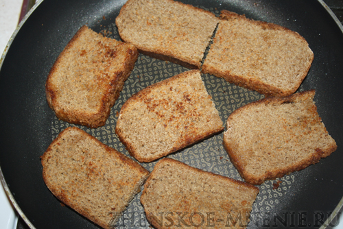 Обжариваем хлеб с двух сторон до еле заметной корочки. В этот момент важно