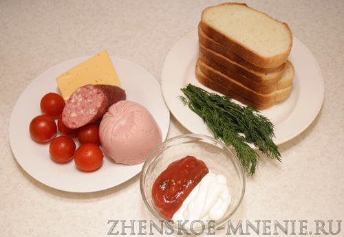 На фото: ингредиенты для приготовления горячих бутербродов: