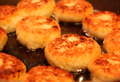 - Намочите руки, сформируйте сырнички и обжарьте их на сковороде.