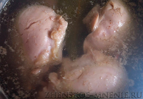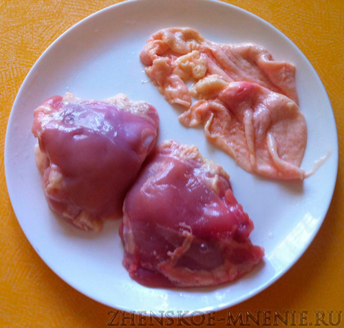 Куриное мясо освободим от шкурки и лишнего жира.
