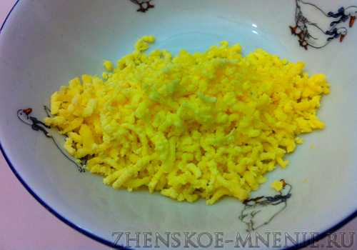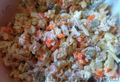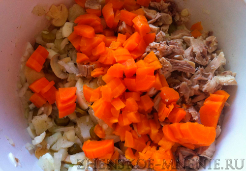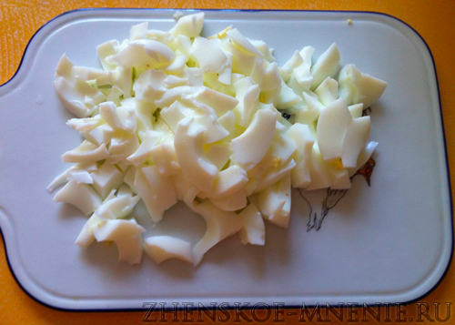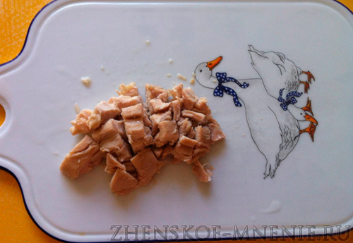 Отправим его в емкость, в которой будем смешивать салат. Она должна быть