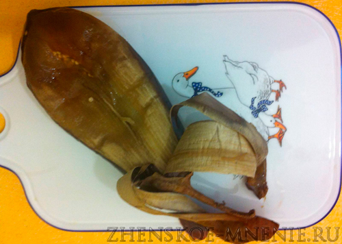 С остывшего баклажана и перца нужно аккуратно снять кожицу. У перца удалить