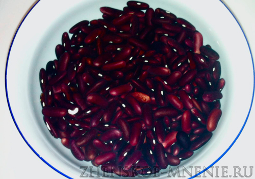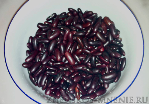 Темно-красную мелкую фасоль промываем и насыпаем в какую-либо емкость.