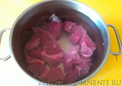 Если задуман суп с мясом, ставим на огонь вариться мясной бульон.