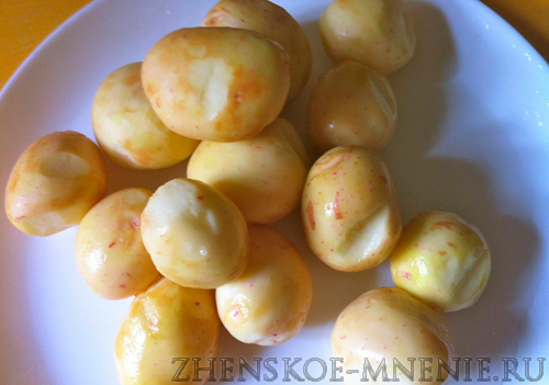 Сварившиеся клубни нужно извлечь из воды, слегка размять их вилкой, не