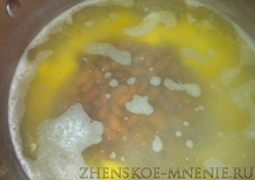 варился. Теперь в кастрюлю следует засыпать фасоль и, пока она доваривается,