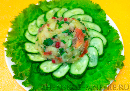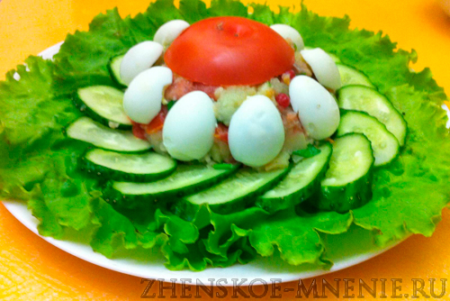Приготовить такой салат можно и для повседневного семейного ужина, и длясервировки праздничного стола. Праздничный вариант потребует больше времени