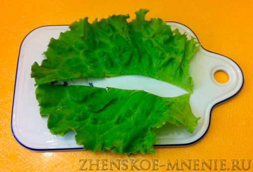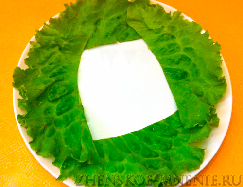Для салатной горки берем плоское блюдо и выкладываем половинки салатных