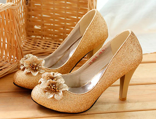 Туфли на высоких каблуках с золотистым мерцанием своим видом погружают в